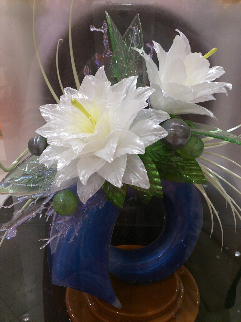 このお花!両方ともなんとっ!アメチャンなんです♪有名な方が作った飴細工だそうで、すごくキレイでした!
